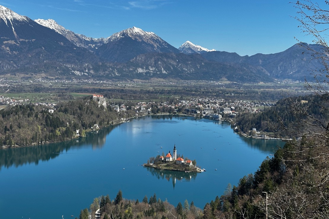 Velika (Great) and Mala (Little) Osojnica are two hills, or peaks, that rise on the western side of Lake Bled. These peaks offer some of the best views of the lake and are popular hiking destinations for visitors, photographers, drone operators, and influencers. There are two trails leading to the peaks, an easier trail with a moderate gradient, and a much steeper, more exposed scenic trail with beautiful views along the way. If you have to choose, Mala Osojnica offers the better view.