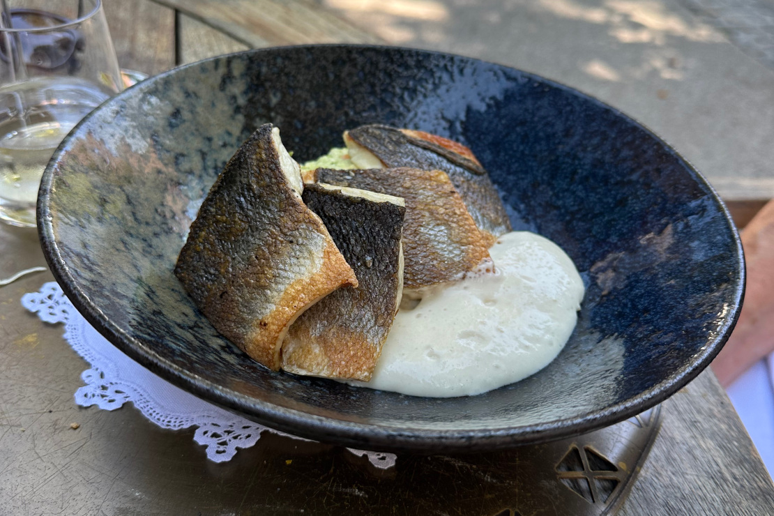 - Sea Bass with Poštoklja Pureé - Poštoklja is a vegetable mash from the Soča Valley and the village of Kobarid. It is made from boiled potatoes and turnip leaves or cabbage, often with added fried garlic or onions.